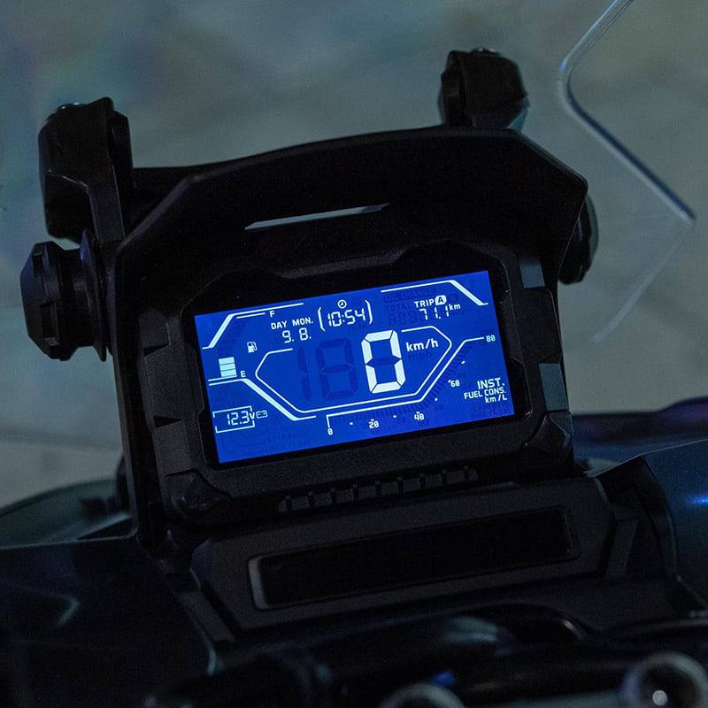 Panelmeter digital yang memberikan kesan futuristik dan berbagai informasi seperti speedometer, fuelmeter, average fuel consumption, instant fuel consumption, odometer, tripmeter, date & time , battery indicator, outdoor temperature indicator dan oil change indicator.