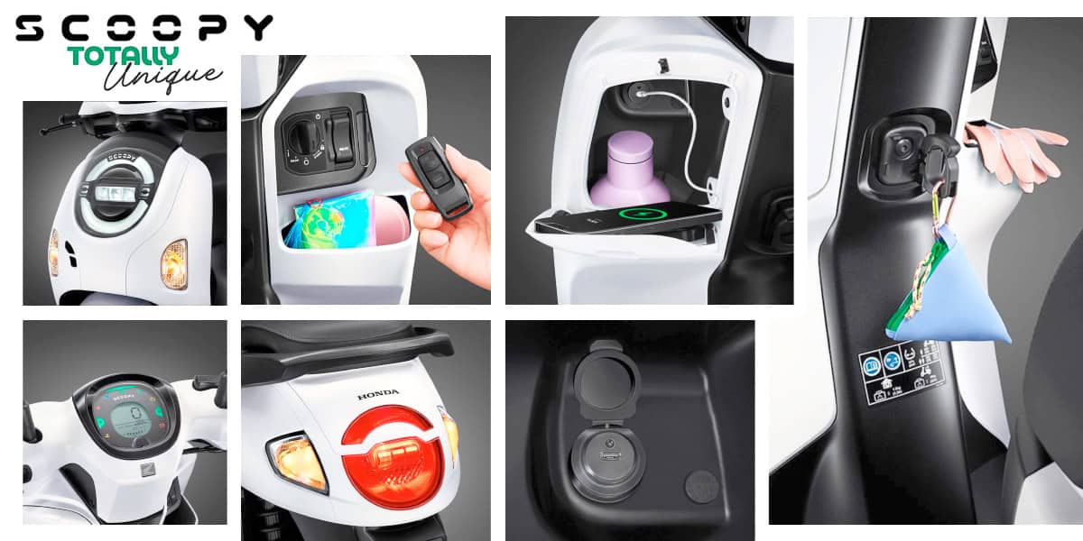 Fitur unggulan lain pada New Honda Scoopy juga dipertahankan, penyematan Honda Smart Key Sistem untuk tipe Smart Key hadir terintegrasi dengan Answer Back System dan Antitheft Alarm sehingga semakin menunjang keamanan serta kemudahan. Informasi dari Digital Panel Meter yang berdesain modern, dengan informasi yang lebih beragam seperti speedometer digital, penunjuk waktu digital, konsumsi bahan bakar rata-rata, real time, tripmeter, indikator Smart Key dan indikator baterai (khusus untuk tipe Smart Key), serta tampilan baru indikator ECO sebagai panduan berkendara efisien. Fitur lainya adalah Multi-Function Hook yang bermanfaat untuk menggantungkan barang bawaan secara praktis dengan desain yang dapat dilipat apabila tidak digunakan.