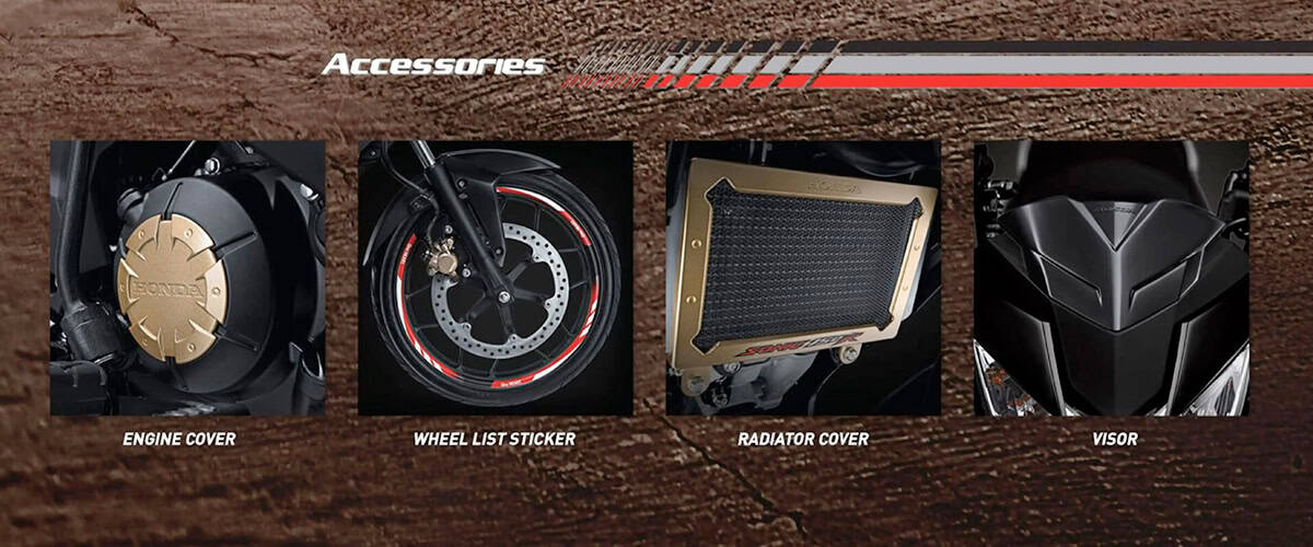 Harga aksesoris Honda Sonic 150R sebesar 220.000.
