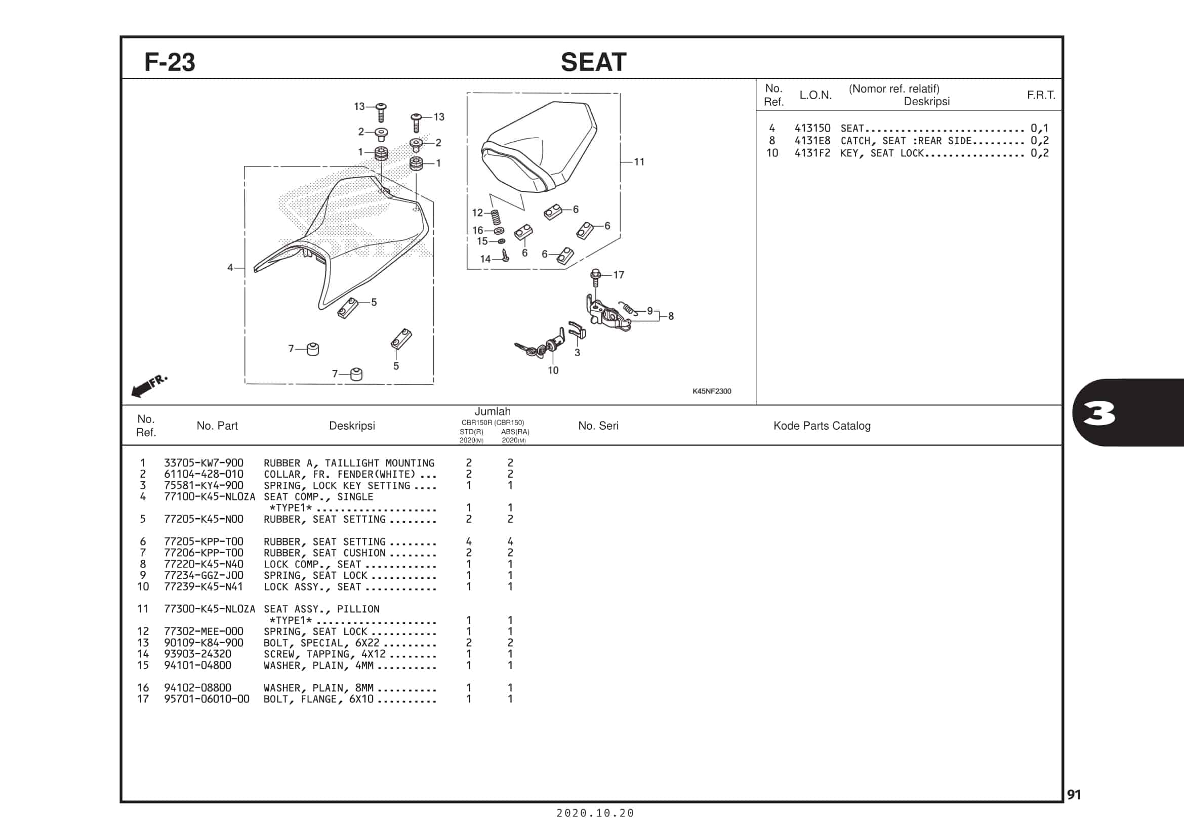 F-23 Seat – Katalog Suku Cadang Honda New CBR 150R K45R