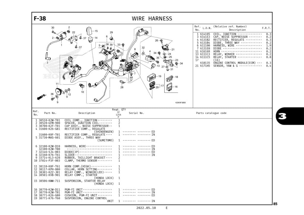 F-38 Wire Harness – Katalog Suku Cadang Honda ST 125 DAX