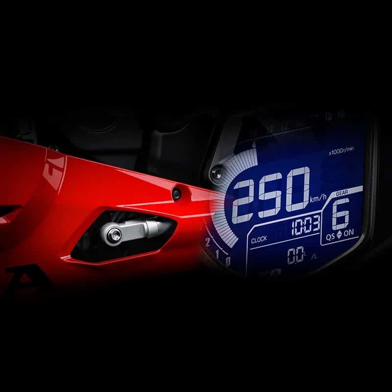 - Quick Shifter – Memberikan efek pada saat perpindahan gigi naik atau turun tanpa menarik tuas kopling dan menurunkan gas ketika bermanuver untuk mendapatkan akselerasi yang maksimal