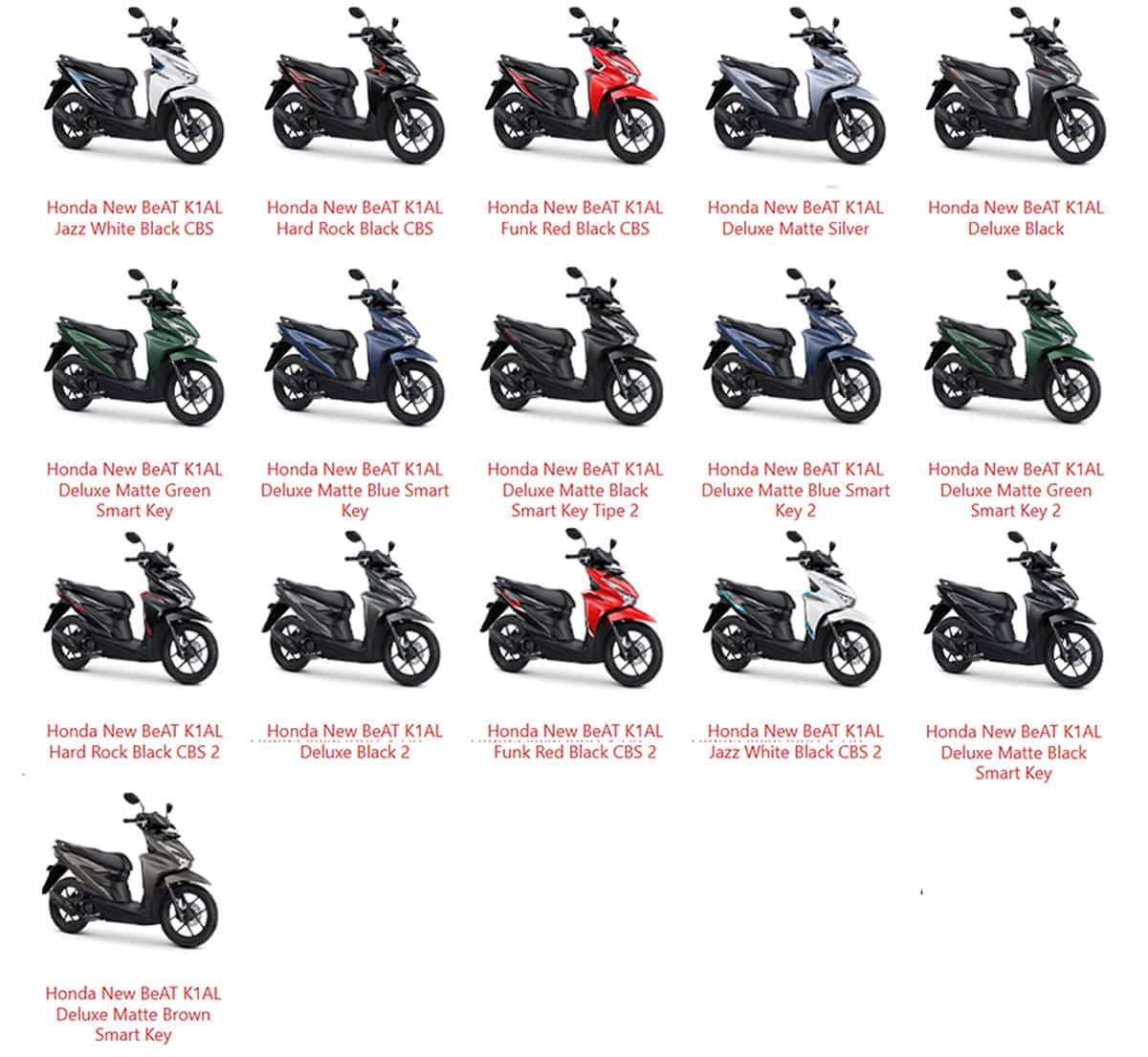 Ada 3 varian pada tipe Honda BeAT FI K25A ini, yaitu :