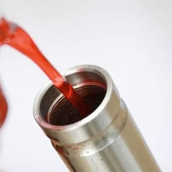 - Tuangkan oli shock yang sudah direkomendasikan ke shock depan melalui bagian atas as shock.