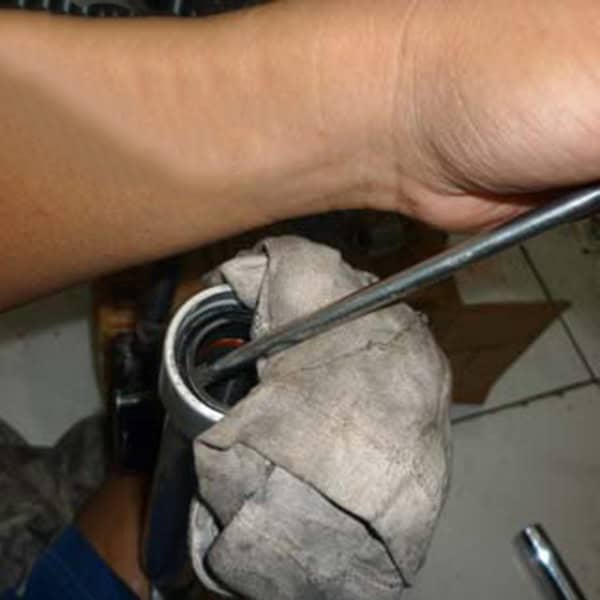 - Bersihkan bagian dalam tabung shock menggunakan part cleaner agar tidak ada kotoran yang mengendap yang dapat perusak as shock atau seal shock.