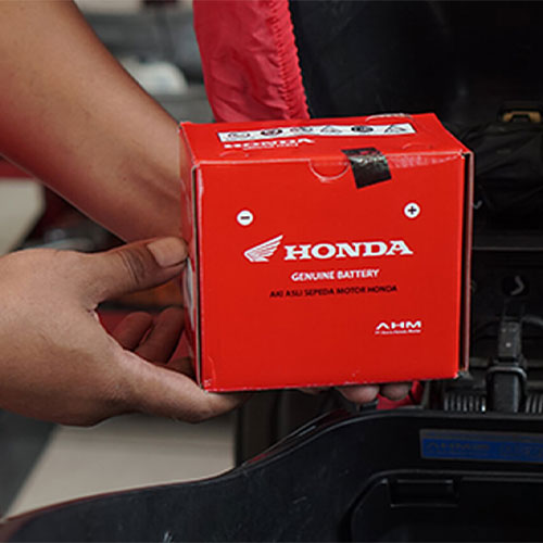 Untuk motor dengan aki basah, cek level air aki. Untuk semua jenis aki, pastikan terminalnya tidak berkarat dan kencang.