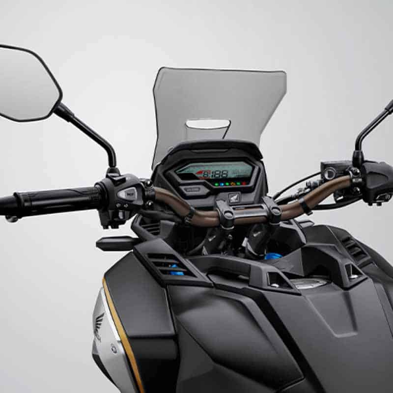 New CB150X hadir dengan desain adventure touring dan nuansa tampilan big bike, posisi berkendara yang nyaman, serta beragam fitur canggih yang mampu memberikan performa berkendara yang optimal. Dibekali mesin 150cc DOHC berpendingin cairan, model ini menyuguhkan performa responsif dan sensasi ketangguhan berpetualang ketika berkendara sehari-hari ataupun turing jarak jauh.
