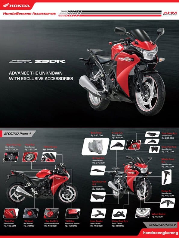 Aksesoris resmi Honda CBR 250RR ini terdiri dari: