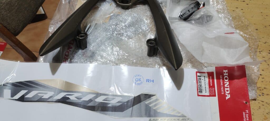 Behel belakang brown Honda Vario 125. Barang sesuai deskripsi, pengemasan aman, pengiriman lumayan cepat, hanya ada beberapa cat seperti bekas kuku (minor) selebihnya aman,, recommended seller....