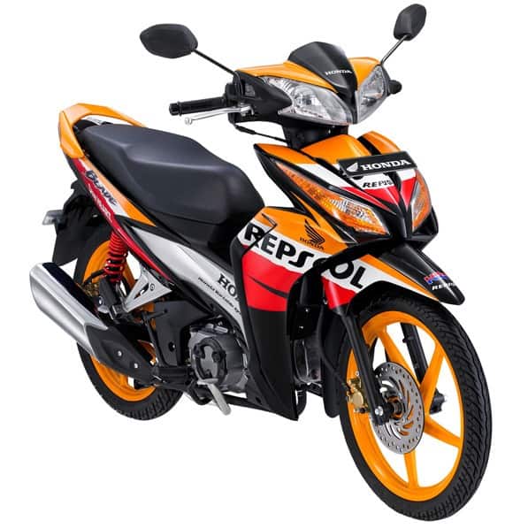 Varian New Honda Blade R dengan fitur double disc brake tetap dipertahankan dan pada kesempatan ini PT AHM juga memberikan striping dan warna bodi terbaru.