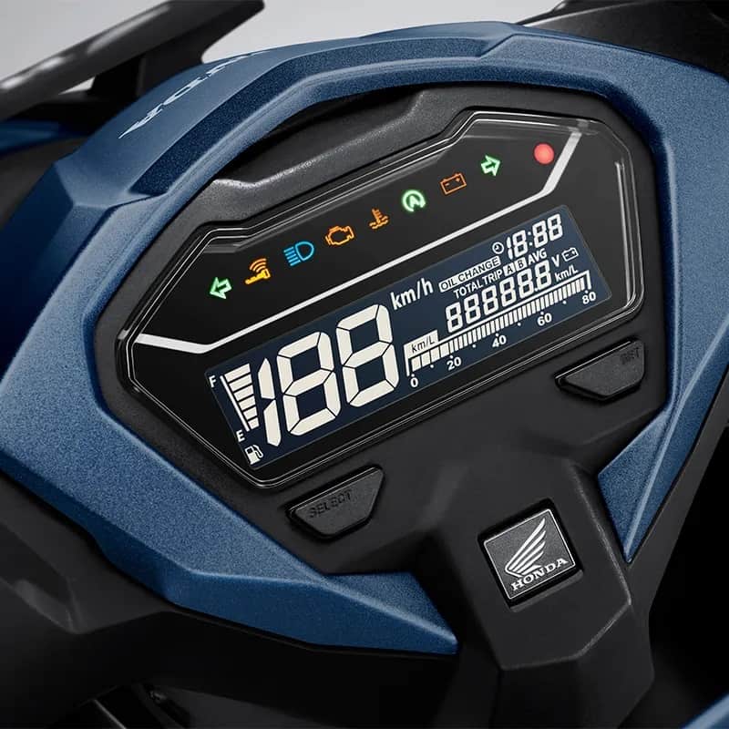 Full digital Panelmeter terbaru dan canggih memuat informasi konsumsi bahan bakar, jam digital, speedometer, tripmeter, pergantian oli, indikator baterai & tegangan aki - USB Charger in Console Box