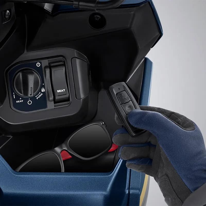 Teknologi canggih yang menggunakan remote, dimana tidak lagi memerlukan kunci kontak untuk menghidupkan mesin dan mengunci stang. Terintegrasi dengan Alarm Anti Maling dan Answer Back System. *Hanya ada di tipe CBS-ISS SP dan CBS-ISS - Functional Hook